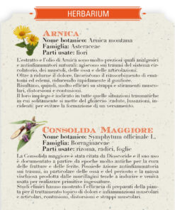 - formulata sia con l’estratto secco titolato che con l’oleolito di fiori d’Arnica montana, in sinergia con l’estratto di Consolida e gli oli essenziali di Cipresso, Pino marittimo e Timo bianco. Arricchita dall’acqua di Menta bio, lenitiva e rinfrescante, dall’olio e burro di Mandorle dolci, emollienti e nutrienti, e dalla Vitamina E, dall’efficace azione antiossidante, dona un rapido sollievo alle zone cutanee interessate dallo stato di sofferenza. Contrasta affaticamenti e tensioni muscolari. Ideale per il massaggio, anche quello sportivo. La sua composizione non unge e non macchia.