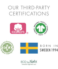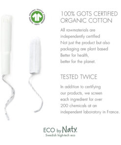 La linea di prodotti femminili di Eco by Naty è certificata da Vincotte. Vincotte è una garanzia indipendente e rinomata a livello internazionale che fa riferimento alla rinnovabilità delle materie prime. È anche uno dei pochi enti di certificazione al mondo che applica entrambi gli standard europeo e nord americano.