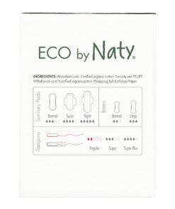 Realizzati con materiali compostabili e a base vegetale, discreti e in armonia con l’ambiente e il corpo delle donne. Gli eco assorbenti interni Naty funzionano come quelli normali, ma l’esperienza di non avere a contatto della pelle la plastica oleosa e le sostanze chimiche nocive vi dirà tutto quello che c’è da sapere. Sentirai subito la differenza di indossare un prodotto ecologico senza plastica a base di petrolio né fibre sintetiche a contatto con la pelle. Completamente naturali, rinnovabili e senza sostanze chimiche in grado di intaccare il delicato equilibrio del pH delle zone intime.