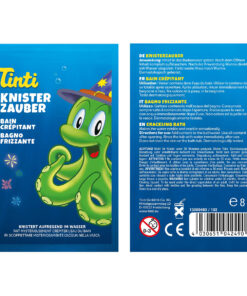 La confezione contiene 3 bustine di polvere magica, ognuna delle quali contiene sali che introdotti nell’acqua della vasca la fanno crepitare e scoppiettare misteriosamente, trasformando il momento del bagno in una divertentissima esperienza.