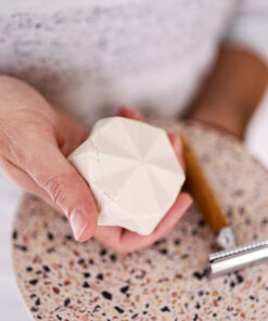 Potete semplicemente posizionarlo su un piattino o su un porta sapone; se preferite metterlo al riparo della polvere, potete utilizzare un piccolo barattolo di marmellata o di crema.