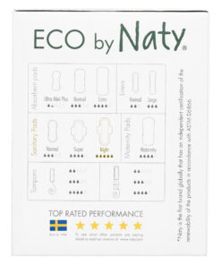 Eco Assorbenti – Naty realizzati con materiali compostabili e a base vegetale. Ciò che natura accoglie, il tuo corpo amerà! Eco by Naty è la prima e unica linea Femcare/Inco con materie prime certificate compostabili al 100%, compresi i singoli involucri e le confezioni. Realizzati con il 100% di cotone organico a contatto con la pelle.