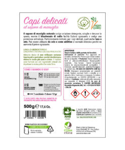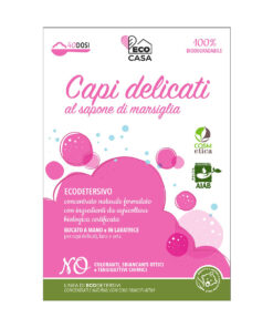 - Capi delicati a mano e in lavatrice: Ecodetersivo per capi delicati con sapone di Marsiglia e Bicarbonato, utilizzabile sia a mano che in lavatrice. Il sapone di Marsiglia naturale svolge un’azione detergente, scioglie e rimuove lo sporco, mentre il bicarbonato di sodio facilità l’azione sgrassante e svolge una protezione anticalcare. Particolarmente indicato per i capi delicati, quali lana e seta. Può essere utilizzato da solo o come additivo al normale detersivo perché ne aumenta il potere sgrassante.