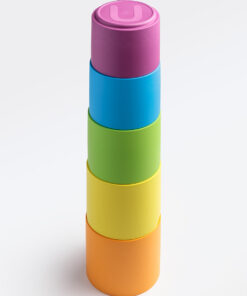 eKoala – Gioco impilabile multiattività in bioplastica, è un gioco con mille usi! Usalo come una piramide arcobaleno, come una fantastica batteria, come gioco di incastri che diventa un pratico secchiello, per giocare al mare o durante il bagnetto! Di eKoala, azienda italiana che realizza prodotti per bambini sulla base di funzionalità, divertimento e soprattutto eco-compatibilità in bioplastica. Un prodotto super robusto e stabile, realizzato sostituendo la plastica con un materiale biodegradabile. La bioplastica è un materiale 100% naturale, del tutto simile alla plastica e resistentissimo, ma eco-friendly e 100% biodegradabile. Sicuro, privo di sostanze tossiche