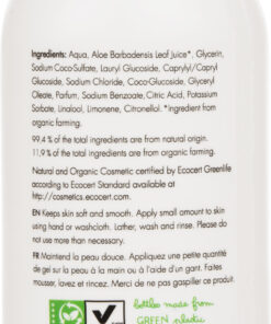 Abbiamo creato il Gel doccia – Eco by Naty, biologico, ideale per chi ha la pelle delicata. Abbiamo utilizzato il minor numero di ingredienti, per creare un detergente biologico quanto più semplice e naturale possibile. Questa formulazione delicata è ricca di succhi di aloe vera lenitivi e idratanti che detergono senza privare la pelle del corpo dei propri oli protettivi naturali.