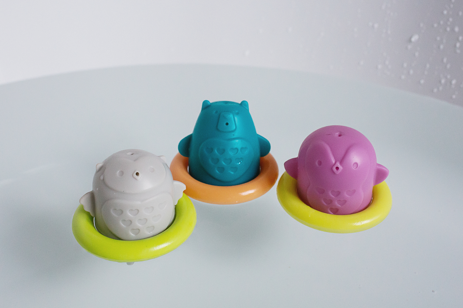• Schiaccia, spruzza e galleggia – Schiacciando il pancino di questi amichetti per il bagno si vede schizzare l’acqua da sotto, oppure si possono lasciar galleggiare come sulle onde del mare