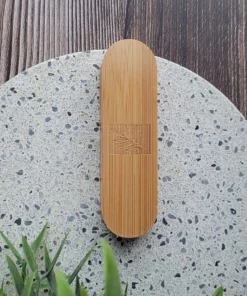 La confezione magnetica è interamente in bambù e include due tamponi in silicone riutilizzabili con testine differenti per soddisfare ogni esigenza.