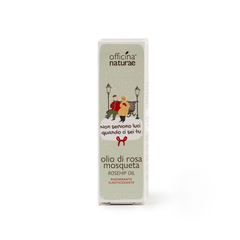 NON SERVONO LUCI QUANDO CI SEI TU Olio di Rosa Officina Naturae è la confezione regalo Limited Edition per Natale 2025, che racchiude olio puro di Rosa Mosqueta in flacone in vetro da 10 ml con applicatore.