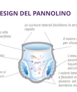 Il bordo elastico in vita e i volant flessibili sulle gambe permettono un’invincibile aderenza, garantendo la massima delicatezza e cura della pelle insieme con una tenuta invidiabile che non permetterà fuoriuscite laterali nemmeno nei movimenti più sfrenati. La certificata “Air Flow Technology – La tecnologia del flusso d’aria” si prende cura della pelle del bambino e lo protegge dalle irritazioni