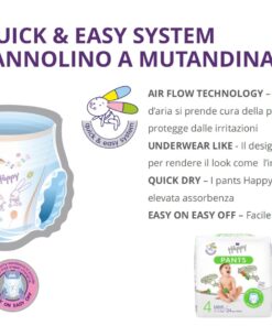 I Pants Happy sono facili da indossare e togliere con il sistema easy ON easy OFF.