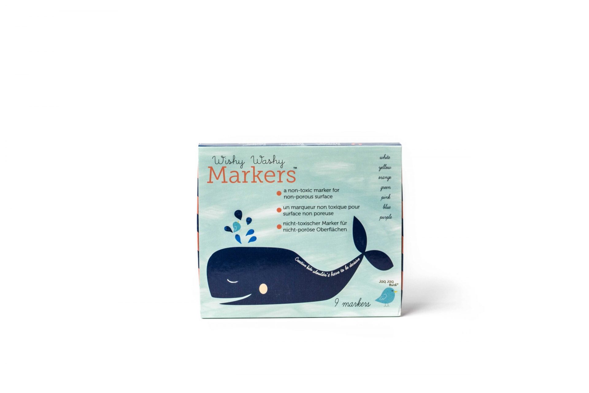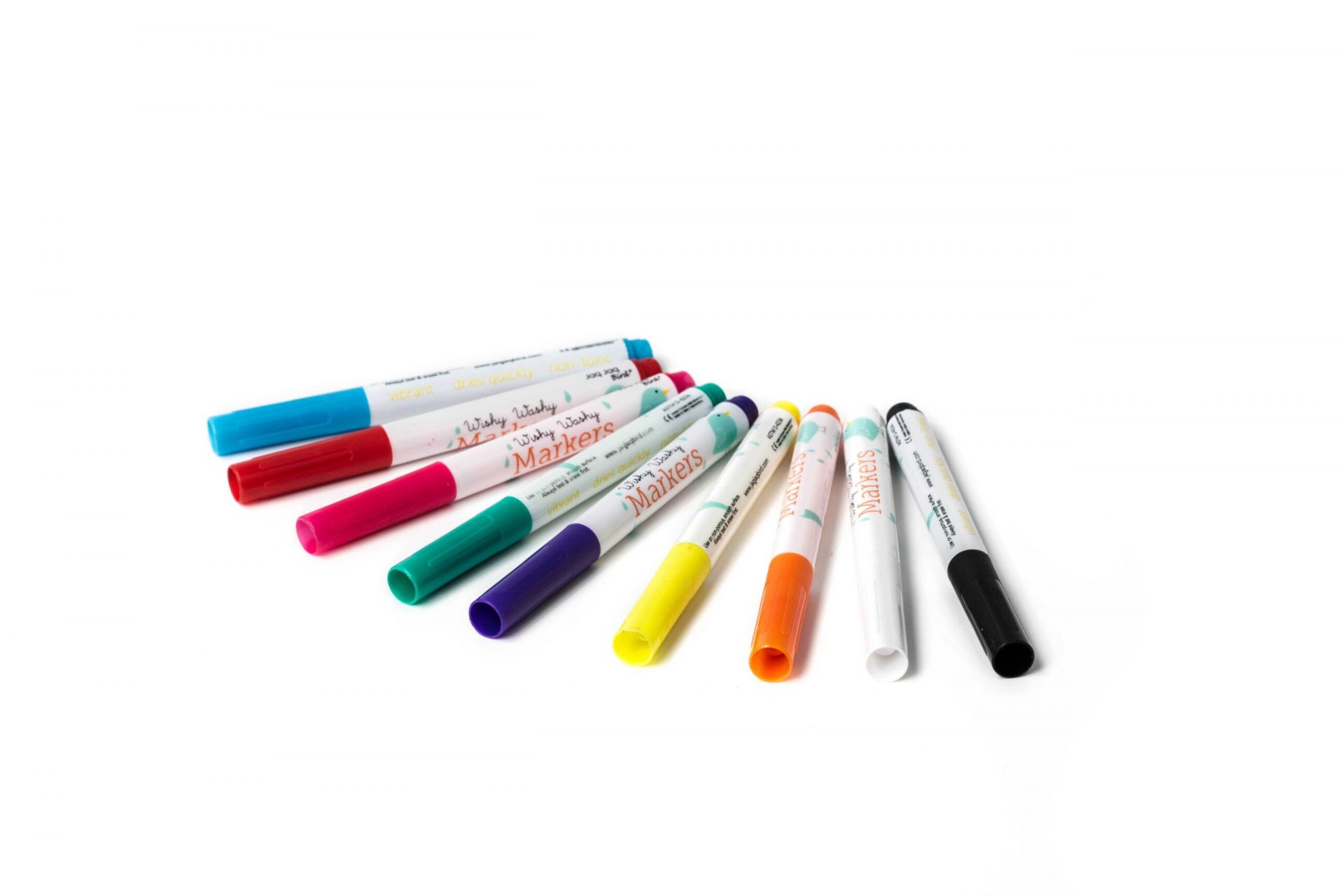 I pennarelli lavabili multisuperficie di Jaq Jaq Bird scrivono su molte superfici e si lavano via con un colpo di spugna da tutte le superfici non porose