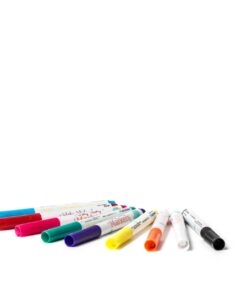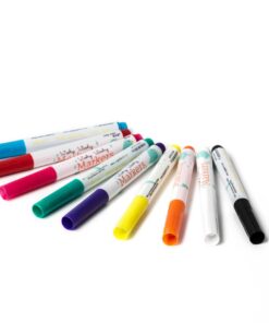Questa confezione include 9 pennarelli colorati lavabili con punta da 4,5 mm. I colori sono atossici, certificati CE e sicuri sia per le persone che per l’ambiente!