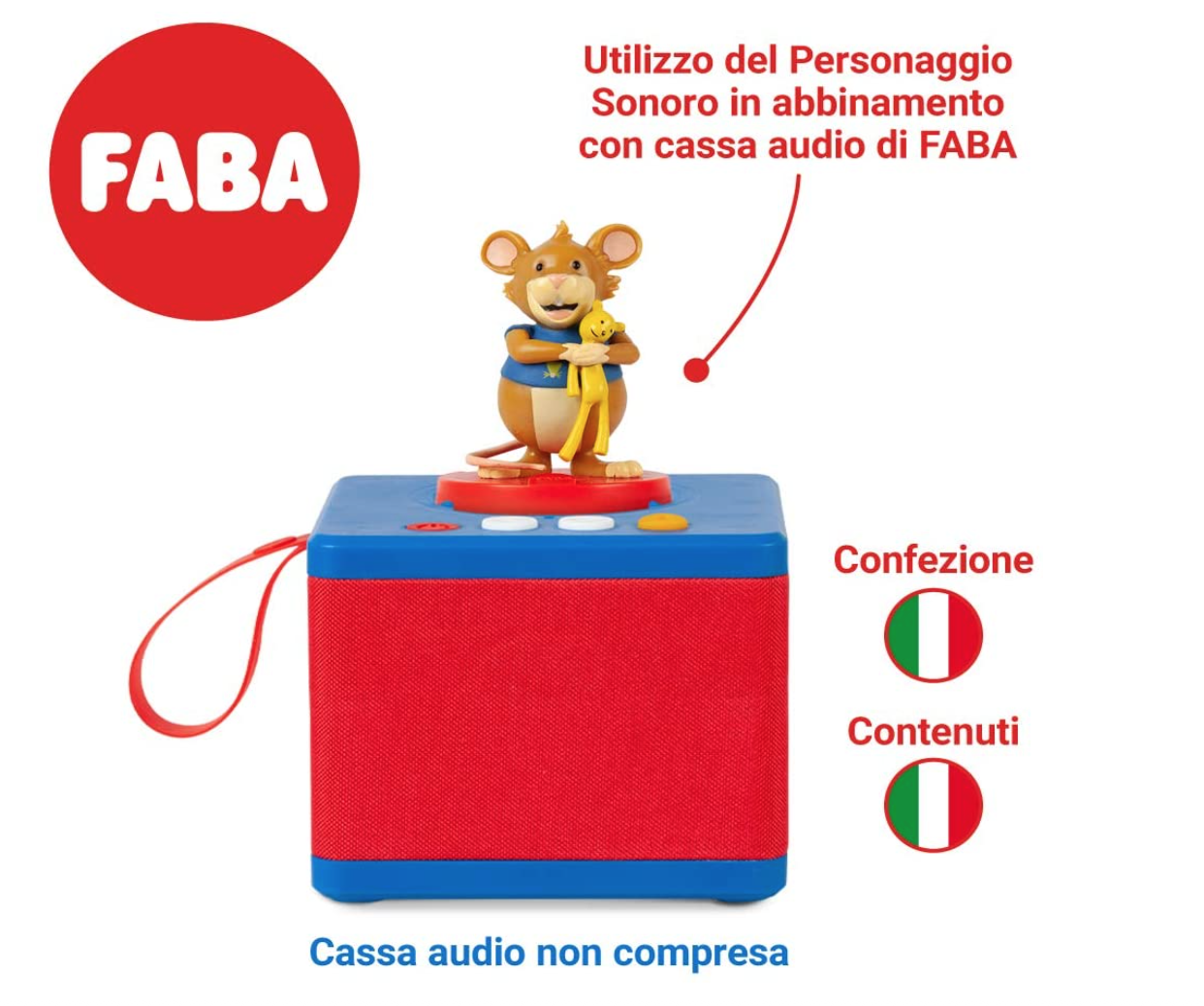 I Personaggi Sonori Faba raccontano ai bambini storie di fantasia, “di paura”, insegnano l’inglese o li metteno in contatto con i personaggi dei loro cartoni animati preferiti. Ogni Personaggio è un protagonista dell’universo dei bambini: contiene un audiolibro o una raccolta di storie, filastrocche, musiche e contenuti educativi.