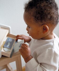 Con i soldi in legno, il bancomat e i pulsanti del registratore di cassa, il vostro bambino impara i numeri e i piccoli calcoli. Il registratore di cassa viene fornito con un bancomat in legno, una carta di debito in legno, 6 monete in legno e 5 banconote in legno.