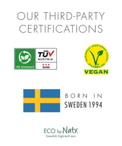 • Certificato al 100% senza cloro, senza lattice e senza profumo