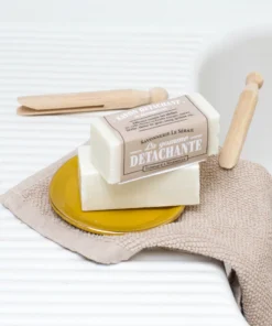 Prodotto in Francia, il sapone smacchiante é composto per più del 30% da sapone di Marsiglia, da bicarbonato di sodio (15 – 30% ) e acqua ( 5 – 15%).